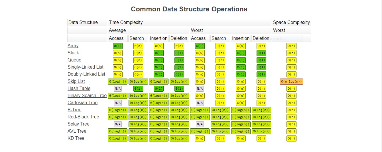 Comparison between different data structures — bigocheatsheet.com 不同数据结构之间的比较——bigocheatsheet.com