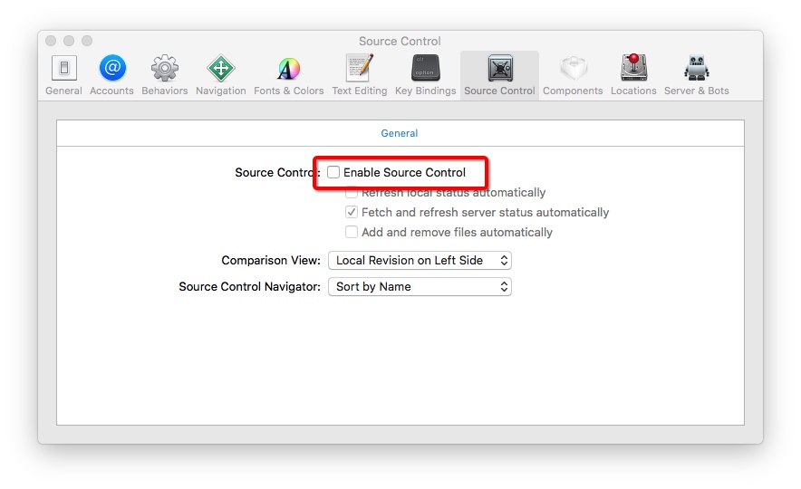 后来突然看到工程中的每一个类库的右边都有一个M符号,M标示类库代码有修改,可是并没有修改代码,我就猜想是不是Xcode的git出问题了,就关闭了Xcode的git版本管理功能,如下图。结果就好了,好了!